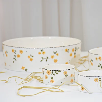 ست سرامیکی پذیرایی دستساز 4 تکه مدل کاسه ماگ