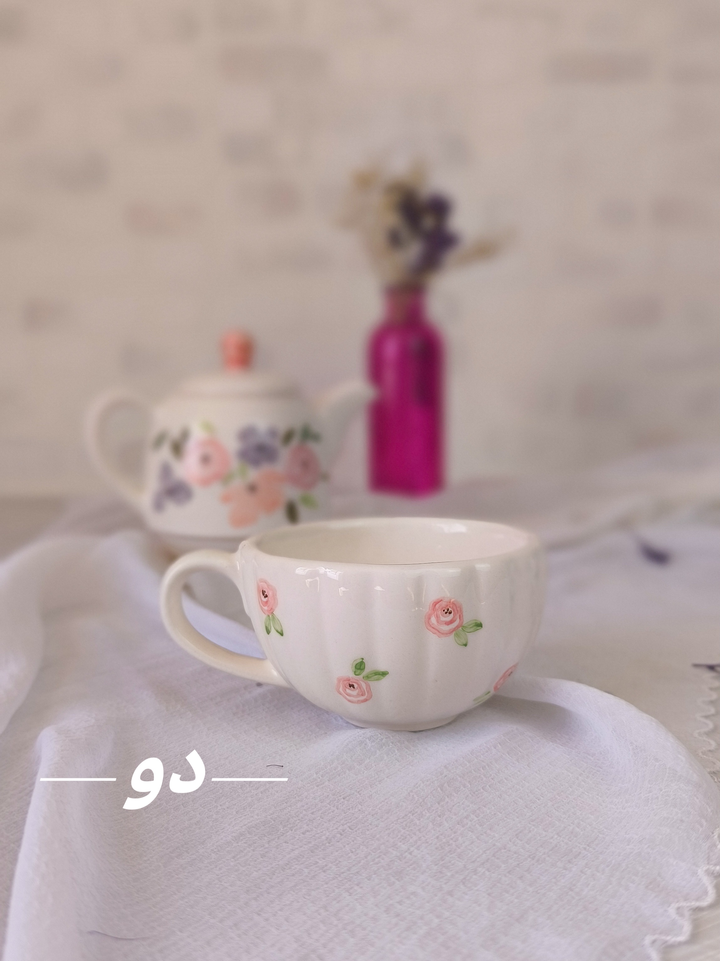 یک فنجون که هم زیباست و هم خوشدست! طراحی دالبری لبههای این فنجون، اون رو به محصولی خاص تبدیل کرده . دهانهی پهن ، عطر و طعم نوشیدنی رو به خوبی آزاد میکنه، چه یک قهوهی گرم باشه، چه یک شربت خنک تابستونی.یه فنجون تو دل برو و شیک که با طرح های گل گلیش دل هر کسی رو می بره ، طرح گل رز سه تا رنگ بندی داره . این فنجون رو اگر با قوری ست کنید مناسب 3 نفر میتونه باشه.