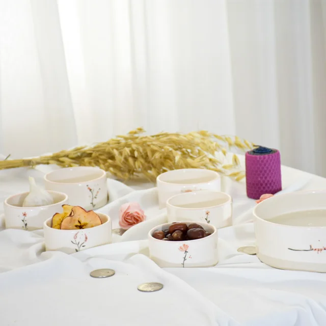 هفت سین دستساز اقتصادی و مینیمال شامل 6 عدد کاسه 9 سانتی و 1 عدد کاسه 17 سانتی