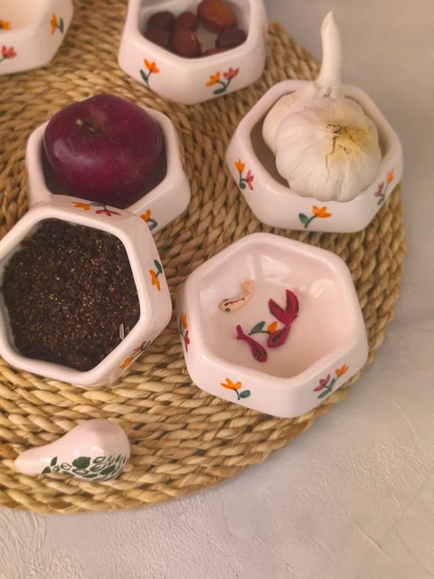 پیاله ۶ ضلعی سرامیکی دستساز با طراحی منحصر به فرد و کیفیت بالا، گزینهای ایدهآل برای استفاده روزمره و تزئینی است. ساختار مقاوم و رنگهای طبیعی آن، جلوهای زیبا و دلنشین به محیط خانه شما میبخشد. مناسب برای هدیهای خاص و یادگاری ماندگار.