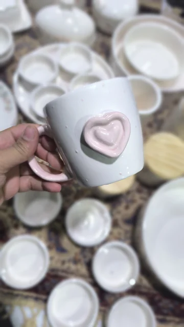 ماگ سرامیکی قلبی صورتی کیوت تنوع در مدل ماگ و قلب